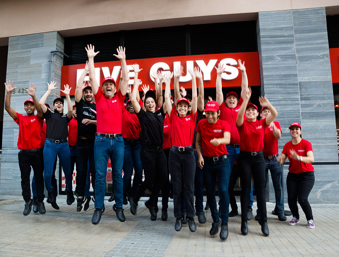 We average roughly 25 employees per Five Guys location. Add it all up and we currently have more than 30,000 people working for Five Guys worldwide!